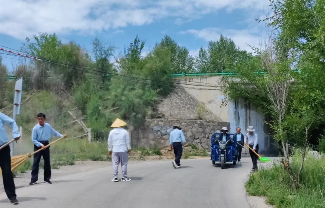 ▲組織黨員進行山城村環(huán)境衛(wèi)生大整治