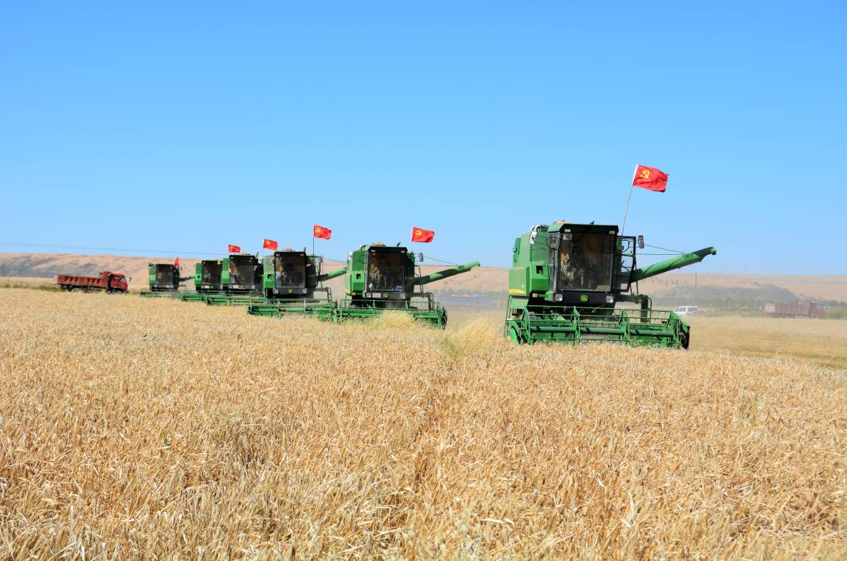 一排排收割機(jī)進(jìn)入田地聯(lián)合作業(yè),黨旗在金色田間麥浪中飄揚(yáng),廣大黨員、干部職工走向田間投入到緊張的生產(chǎn)勞動(dòng)中,構(gòu)成青海高原大地最美的秋收畫卷。