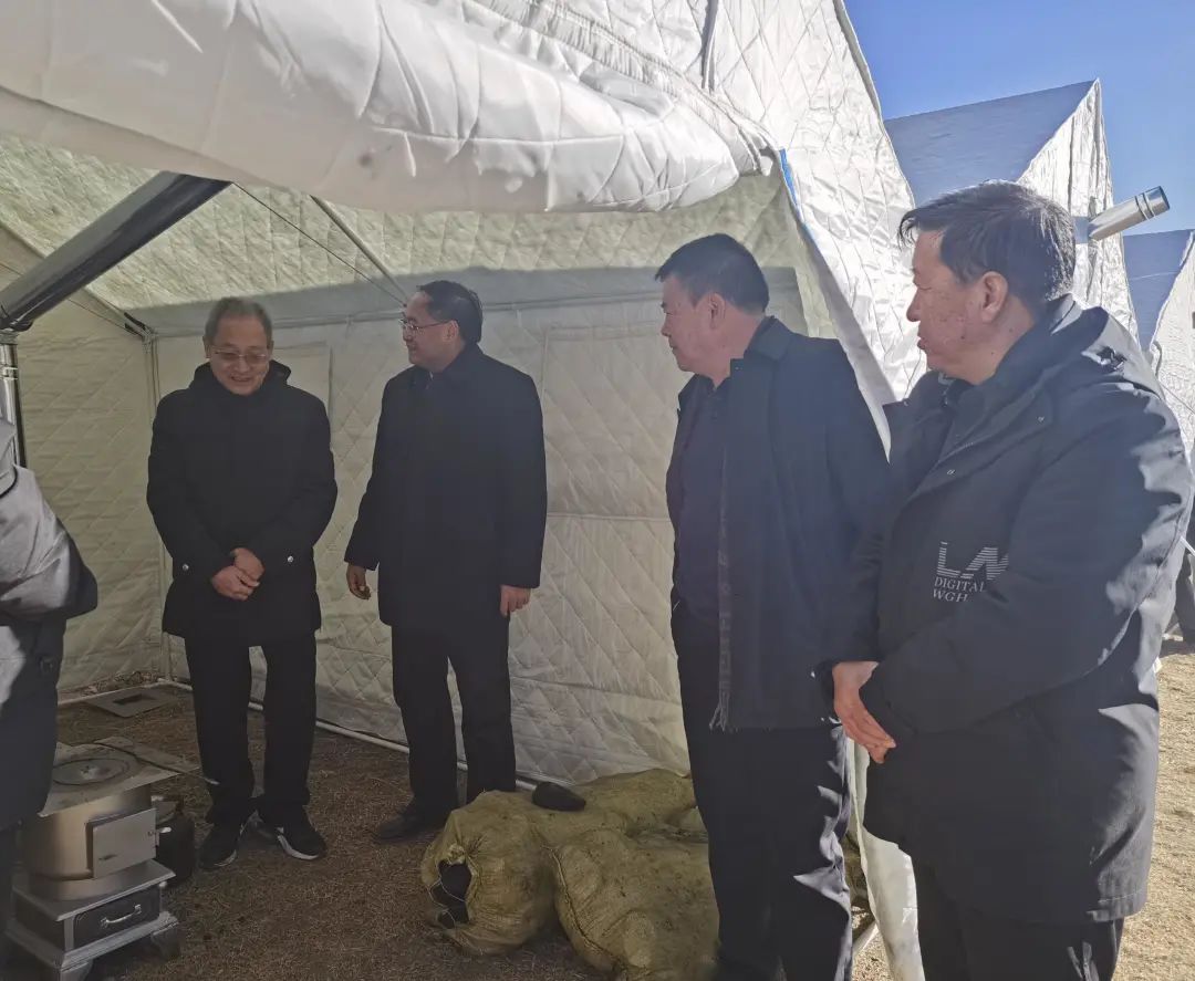 1月15日上午,馬榮華、李向陽帶領(lǐng)班子成員陪同省應(yīng)急管理廳副廳長王躍榮、門源縣副縣長喇海峰、門源縣應(yīng)急管理局局長秦忠輝同志到門源種馬場公司看望慰問受災(zāi)員工群眾,深入了解帳篷搭建、物資儲備等工作。集團(tuán)公司向門源種馬場公司提供價(jià)值25萬元的米面油等生活物資,幫助受災(zāi)員工群眾盡快恢復(fù)正常生產(chǎn)生活。