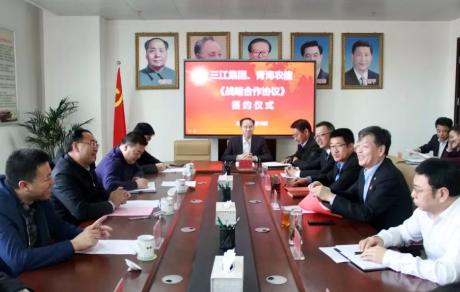 會(huì)議最后,三江集團(tuán)董事長(zhǎng)馬榮華和省聯(lián)社黨委書記嚴(yán)發(fā)倉(cāng)在與會(huì)人員的共同見(jiàn)證下代表雙方簽訂了戰(zhàn)略合作協(xié)議。