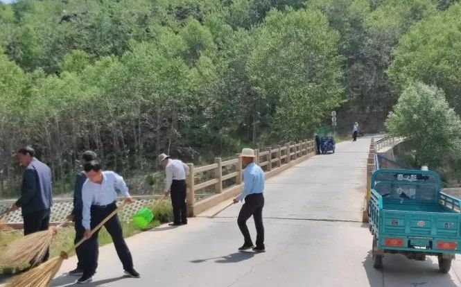 ▲組織黨員進行山城村環(huán)境衛(wèi)生大整治