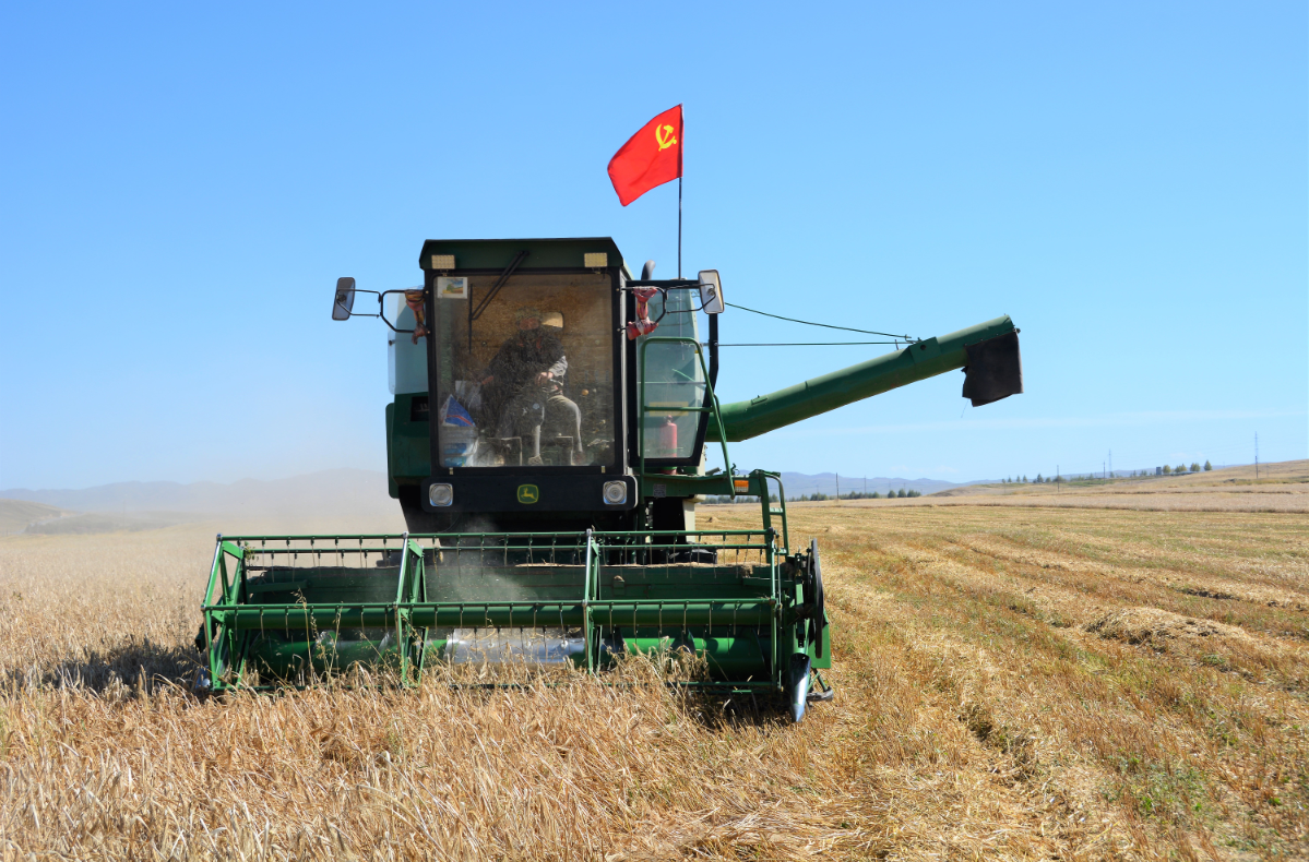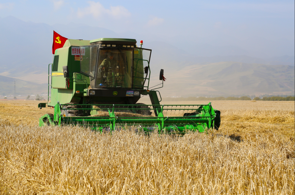 一排排收割機(jī)進(jìn)入田地聯(lián)合作業(yè),黨旗在金色田間麥浪中飄揚(yáng),廣大黨員、干部職工走向田間投入到緊張的生產(chǎn)勞動(dòng)中,構(gòu)成青海高原大地最美的秋收畫卷。
